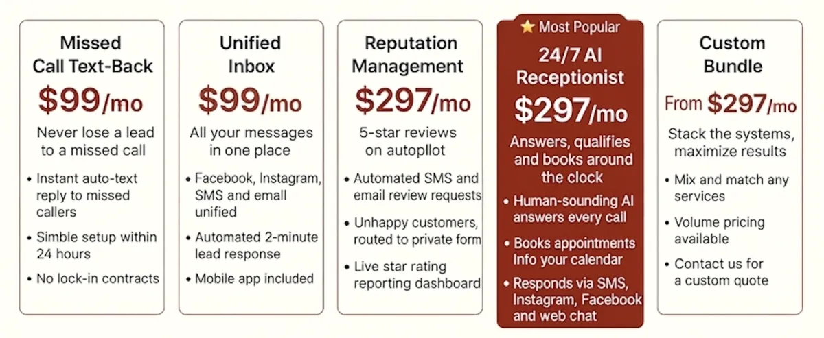 We look at how people find you, where they contact you, and where they're dropping off, then we design a simple automation plan for your business.